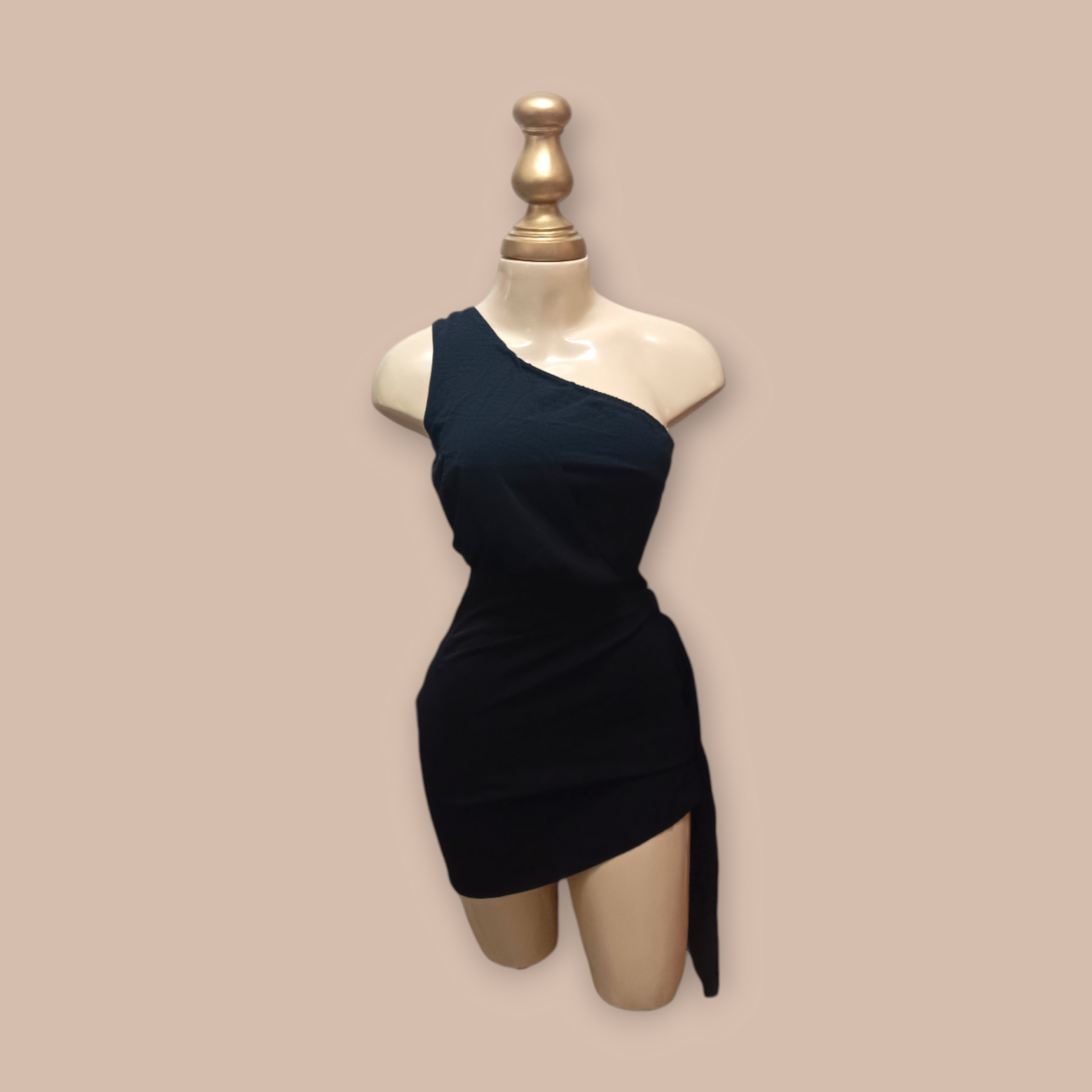 One-shoulder dress with knot Black